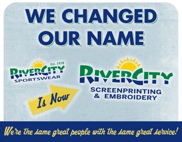 We’ve changed our name to RiverCity Screenprinting and Embroidery in order to better outline the main products and services we offer as a company.