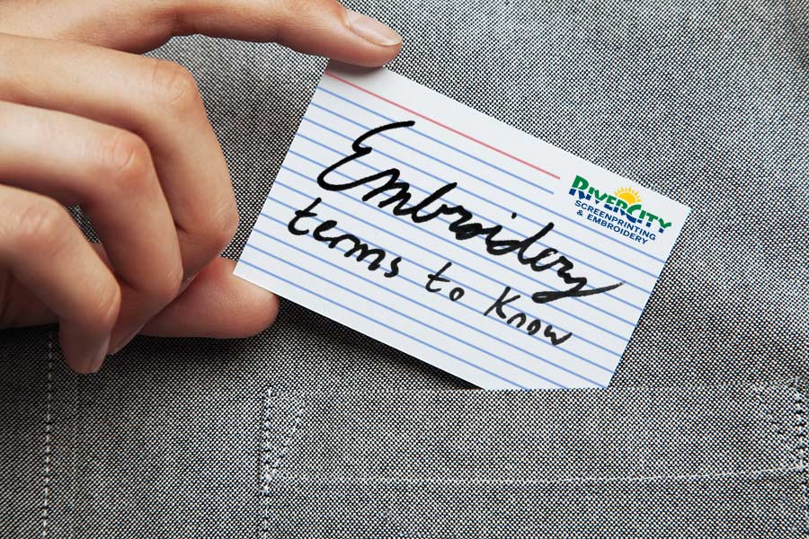 You are equipped with a pocket full of machine embroidery terms to make smart decisions about your apparel choices and be able to collaborate with your company of choice to make your vision come to life.